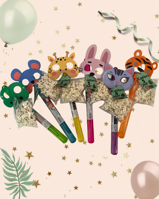Bellenblaas Traktatie met Popcorn & Dierenmasker – Jungle Thema
