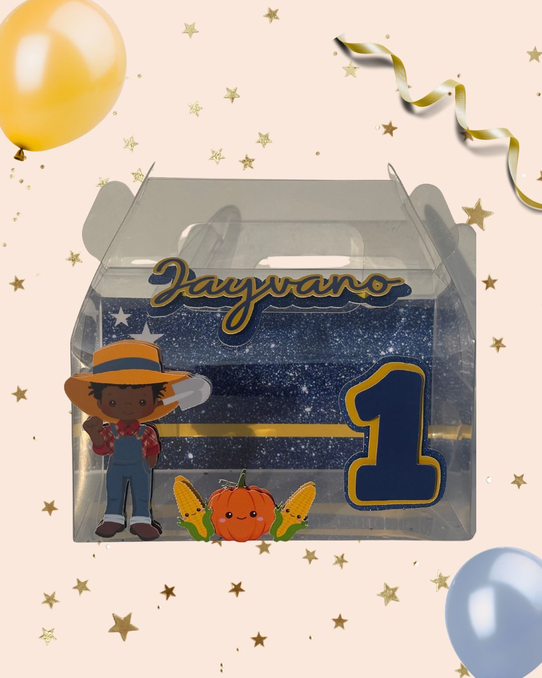 Deze luxe transparante traktatiedoos is dé perfecte manier om jouw traktatie extra speciaal te maken! Gepersonaliseerd met naam, leeftijd en een feestelijk thema naar keuze, is dit doosje niet alleen praktisch, maar ook een echte blikvanger op school of tijdens een feestje.